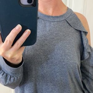 Super cute cold should top with flowy ruffle details. Feels super comfy like a T-shirt material.