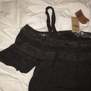 Gray cold shoulder top with lace details