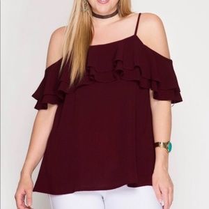Double Ruffled Cold Shoulder Top