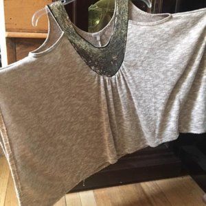 Unique, fun piece! Flowy, loose fit. Sequin detail. Size: M. Length: 23".