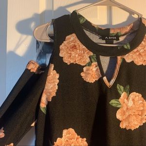 Floral, cold shoulder, keyhole, loose
