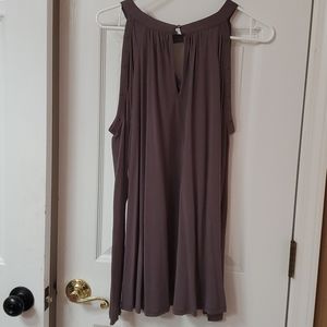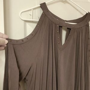 Gray-purple cold shoulder top with stud detailing at neckline. Excellent condition, worn 1-2x. Maurices Plus size 2.