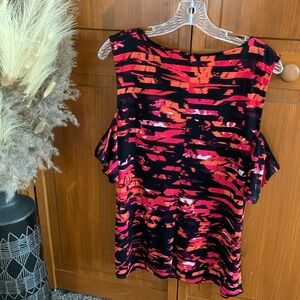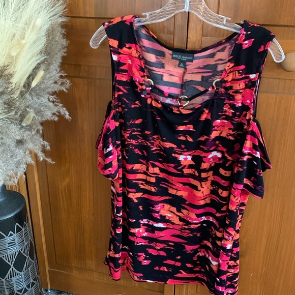 Great condition Detailed with 3 goldtone rings Cold shoulder short sleeves Black, Purple, Orange, Pink
