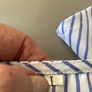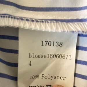 Cold Shoulder Womans’ Striped Blouse with Button front and Tie at Waist. Size L.