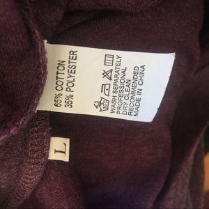 Super soft, plum purple, off the shoulder w/strap, long sleeve top with knot at bottom.