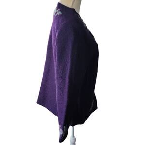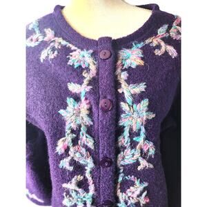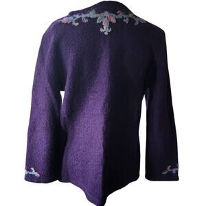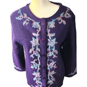 Cold Water Creek Purple Wool Mohair Button Down Embroidered Sweater Large