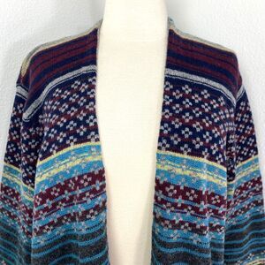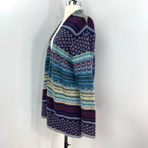 Cold Water Creek Wool Cardigan Sweater 1X 18 Fair Isle Open Front ~ Dark Academia Boho Peasant