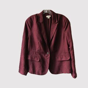 Cold Water Creek women's size L, Maroon Ultra Suede long sleeves, jacket, one button front closure, fully lined