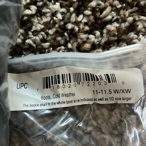New in packaging cold weather boot inserts. Never opened. Size 12-13 Wide. One package contains one left and one right bootie.
