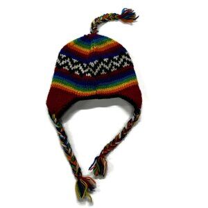 Rainbow 100% wool striped pigtail beanie made in Neptal. I ship fast and package securely for safe delivery!