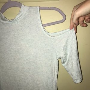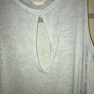 Light blue cold shoulder top. Choker neck. Soft and comfortable. Light material.