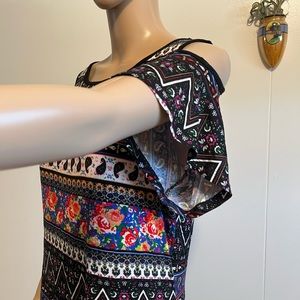 Really cute tunic. Multi color will pair well with various colors of leggings.