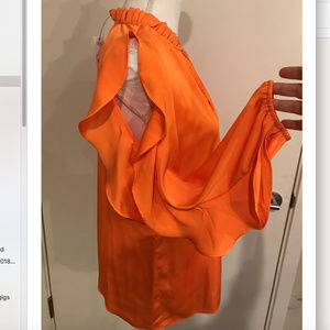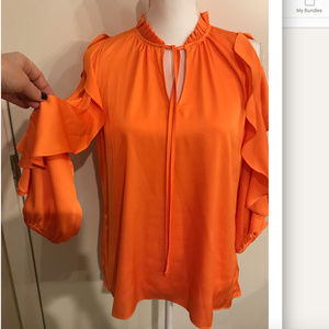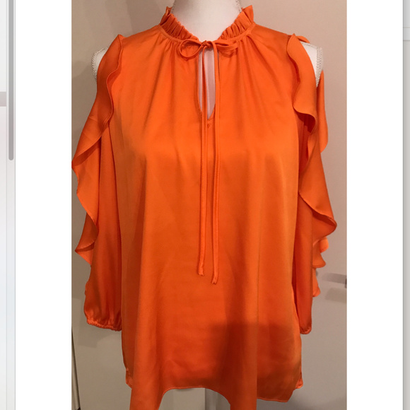 Worthington Cold shoulders Ruffled Top/ blouse Size S Run bigger. New