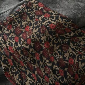 Embrace the colors of autumn with this reversible midi skirt from Coldwater Creek – two beautiful looks in one! One side features a bold red and black floral print, the other a romantic black background with red roses and golden vines. Perfect for cozy fall outfits, layering with boots and sweaters, or dressing up for holiday gatherings.