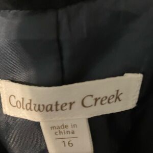 Coldwater Creek size 16 deep blue outdoor jacket. Two generous pockets. Button down. Material has a buttery feel to it, soft. Lined.