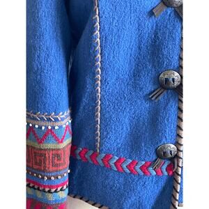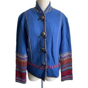 ColdWater Creek Artisan Blue Wool Western Jacket Boho Embroidered Southwestern
