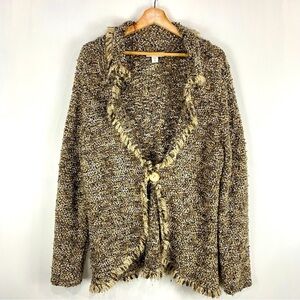 ColdWater Creek Chunky Nubby Knit Wool Fringe Trim Sweater Cardigan Size 1X 18