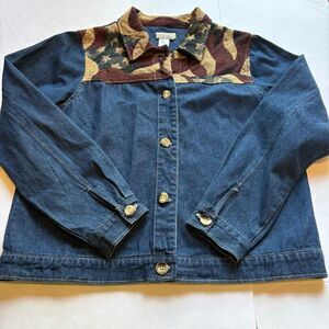 Coldeater Creek Women's Denim Jacket with American Flag Design Blue/Red Large