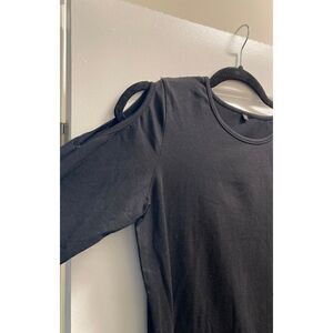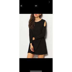 Cold shoulder Round neck 3/4 sleeve Color: black A-line mini dress Size S