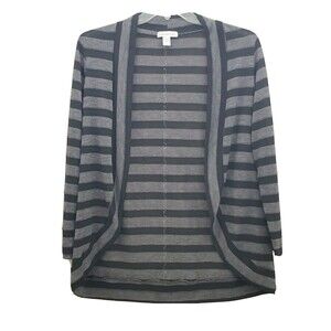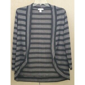 Coldwater Black Gray Striped Open Front Cardigan Sweater Size Large 14