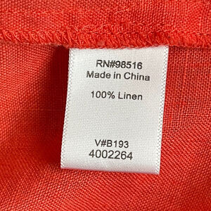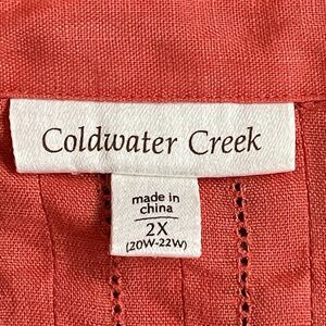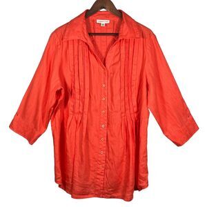 Coldwater Creek 100% Linen Collared Button-Front Pleated Top Size 2X Orange