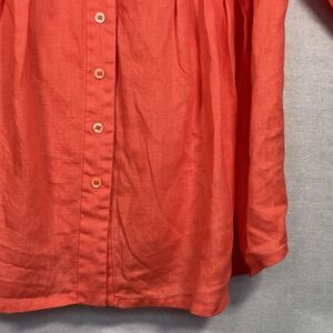 Coldwater Creek 100% Linen Collared Button-Front Pleated Top Size 2X Orange Long Sleeve