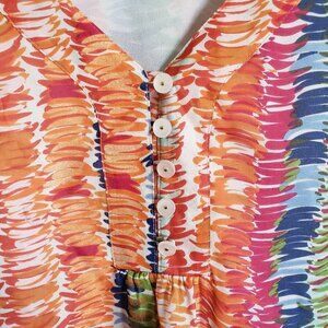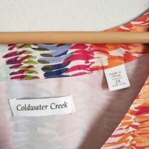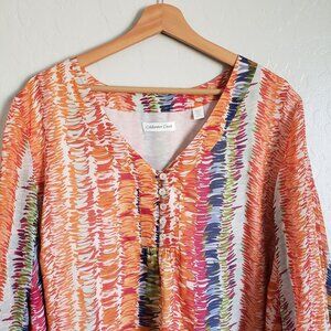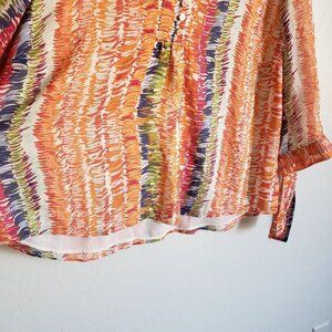 NEW Coldwater Creek Artsy Orange Multicolor 100% Silk V-Neck Tie Sleeve Popover Top Size Women's 2X Plus Brushstroke Print