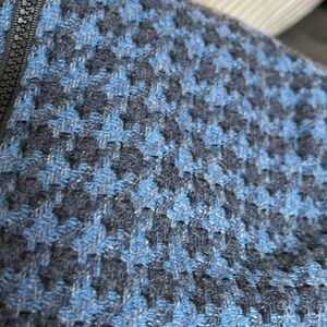 Coldwater Creek 100% Wool Shell Zip Front Blue Houndstooth Lined Blazer Size 14 Two front pockets The close up photo is the best representation of the color.