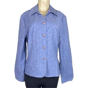 Coldwater Creek 12 Textured Floral Button Collar Cotton Blend Long Sleeve Jacket