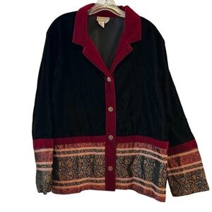 Coldwater Creek 1X Black Velvet Jacket Tapestry Classic Caeer Art to Wear