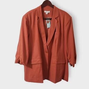 Coldwater Creek 24W Linen Blend Copper Blazer Jacket Rust Orange Stretch NWT