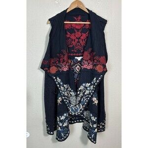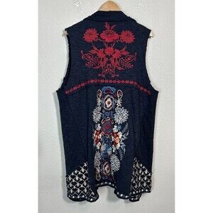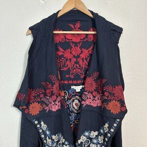 Coldwater Creek 2X Embroidered Sweater Vest Long Shawl Collar Boho Floral