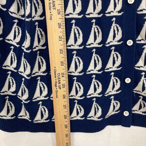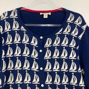 Coldwater Creek 2X Navy White Boat Nautical 3/4 Sleeve Button Down Cardigan
