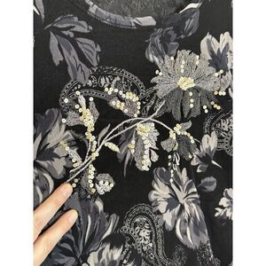 Coldwater Creek 2X Plus Semi Sheer Top Y2K Graphics Sequin Dark Floral