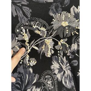 Coldwater Creek 2X Plus Semi Sheer Top Y2K Graphics Sequin Dark Floral