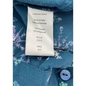 Coldwater Creek 3/4 Sleeve Pintuck Snowflake Whimsy Tunic Large Blue Aqua Purple