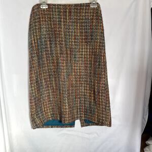 Coldwater Creek 8P skirt pencil tweed lined side zip browns multi-color