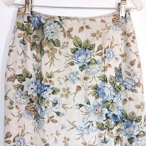 Coldwater Creek 90’s Floral Midi Wrap Skirt Rayon/Linen Size 6