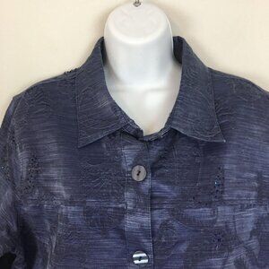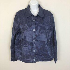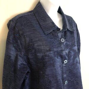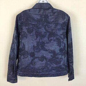 Coldwater Creek ARTSY Western Jacket Size L Blue Button Up BEADED Embroidered