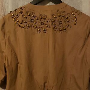Coldwater Creek Beaded Safari Jacket Light Open Front Tan Cotton Size 14 NWT
