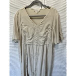 Coldwater Creek Beige Dress Embroidered Short Sleeve Linen Blend Plus 1x