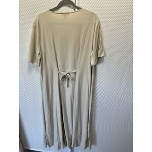 The Coldwater Creek Beige Dress is a stylish midi dress made from a comfortable linen blend fabric, perfect for casual occasions. It features a beautiful floral pattern, short sleeves, and a V-neckline with a tie back detail for added style. The dress is in a neutral beige color, making it versatile for various seasons and occasions. With its plus size fit and boho theme, this dress from Coldwater Creek is a great addition to any woman's wardrobe. modest and comfortable, easy wash and wear.