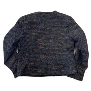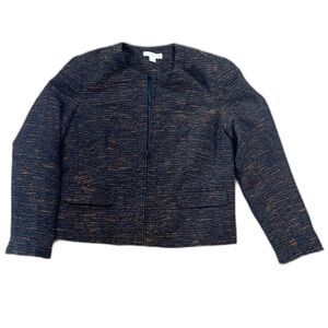 Very classy zip up jacket from Coldwater Creek in black with matte copper color woven through. Structured with pockets in a sturdy material. Size M (10-12), Coldwater Creek.