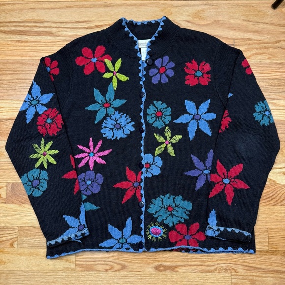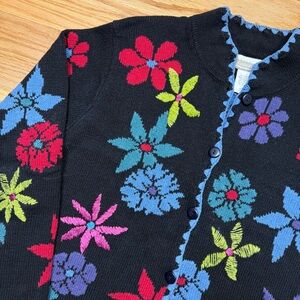 Coldwater Creek Black Cardigan with Colorful Embroidery