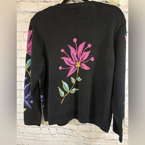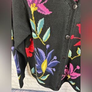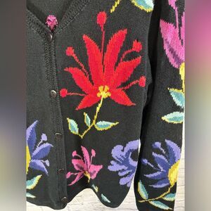 Coldwater Creek Black Floral Tropical Vacation Beach Resort Cardigan Sweater L