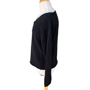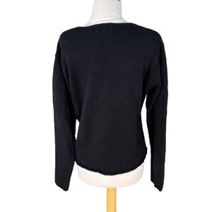Coldwater Creek Knit Cardigan Sweater. Women’s size large. Black with decorative wood-look buttons with Turquoise accents. Boxy fit, boho country vibes.