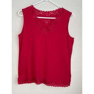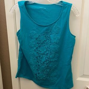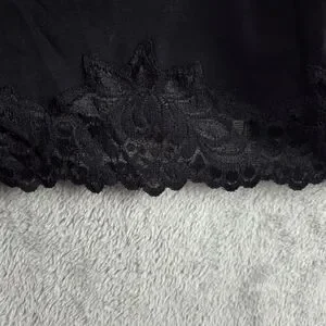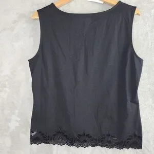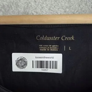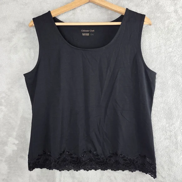 Elevate your wardrobe with this elegant black top from Coldwater Creek. Featuring a delicate lace hem, this top is perfect for any occasion. Pair it with your favorite jeans or skirt for a chic look.
