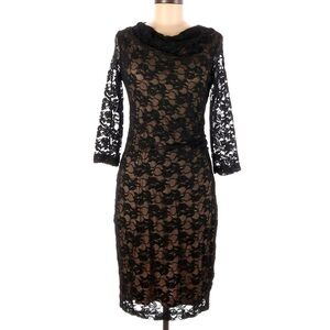 Coldwater Creek Black Nude Lace 3/4 Sleeve Midi Dress