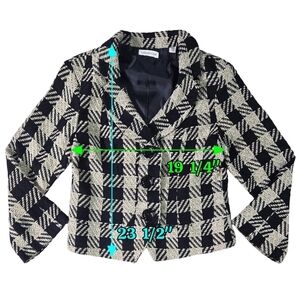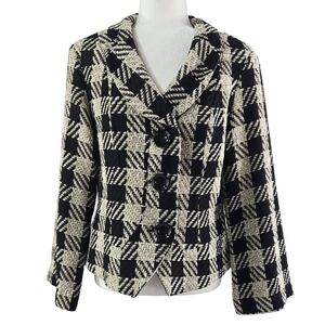 Coldwater Creek Black Tan Buffalo Check Plaid Tweed Blazer Career Preppy PETITE