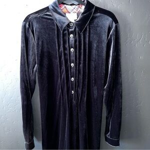 Coldwater Creek Black Velour Red Tartan Plaid Inside Collar Pull Over Dress L